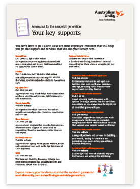 When you're caring, going out for dinner or playing sports with friends can be a long-forgotten luxury. But from small seeds comes great harvests. Australian Unity Wellbeing Index research shows that relationships and sense of community are key to Real Wellbeing. Prioritising these is invaluable for everyone, but especially for the sandwich generation.